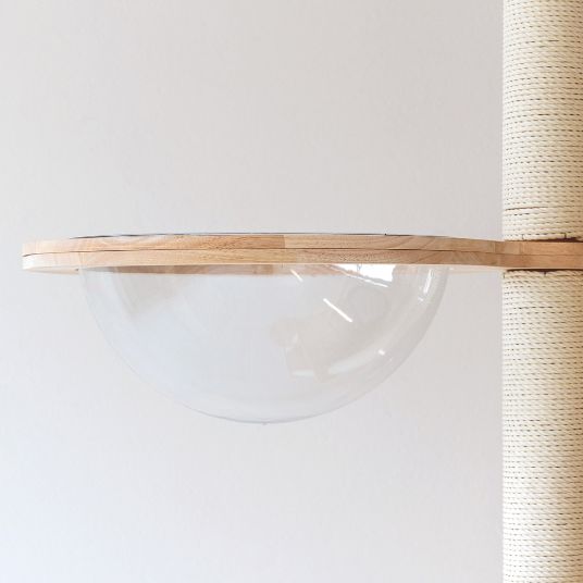 杉より高価で高耐久な無垢ラバーウッドを使用。猫の一生を見据えた強度設計。高低差30cm以下の広いステップで登りやすく、26kgの重量で安定。マットは洗えて多頭飼育にも対応。