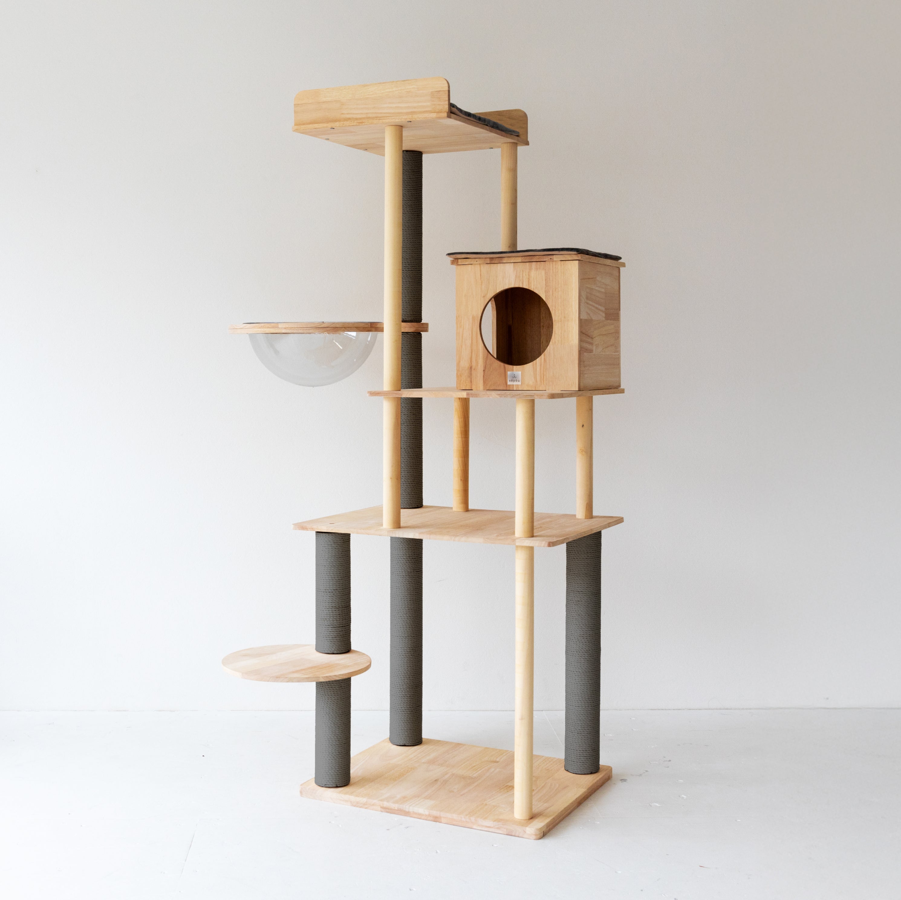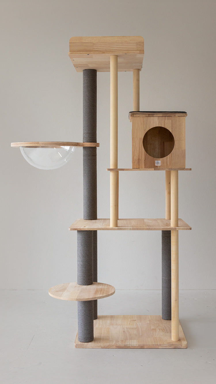 ラバーウッド製のプレミアムキャットタワー