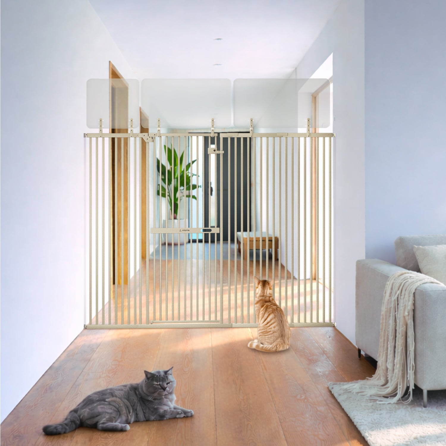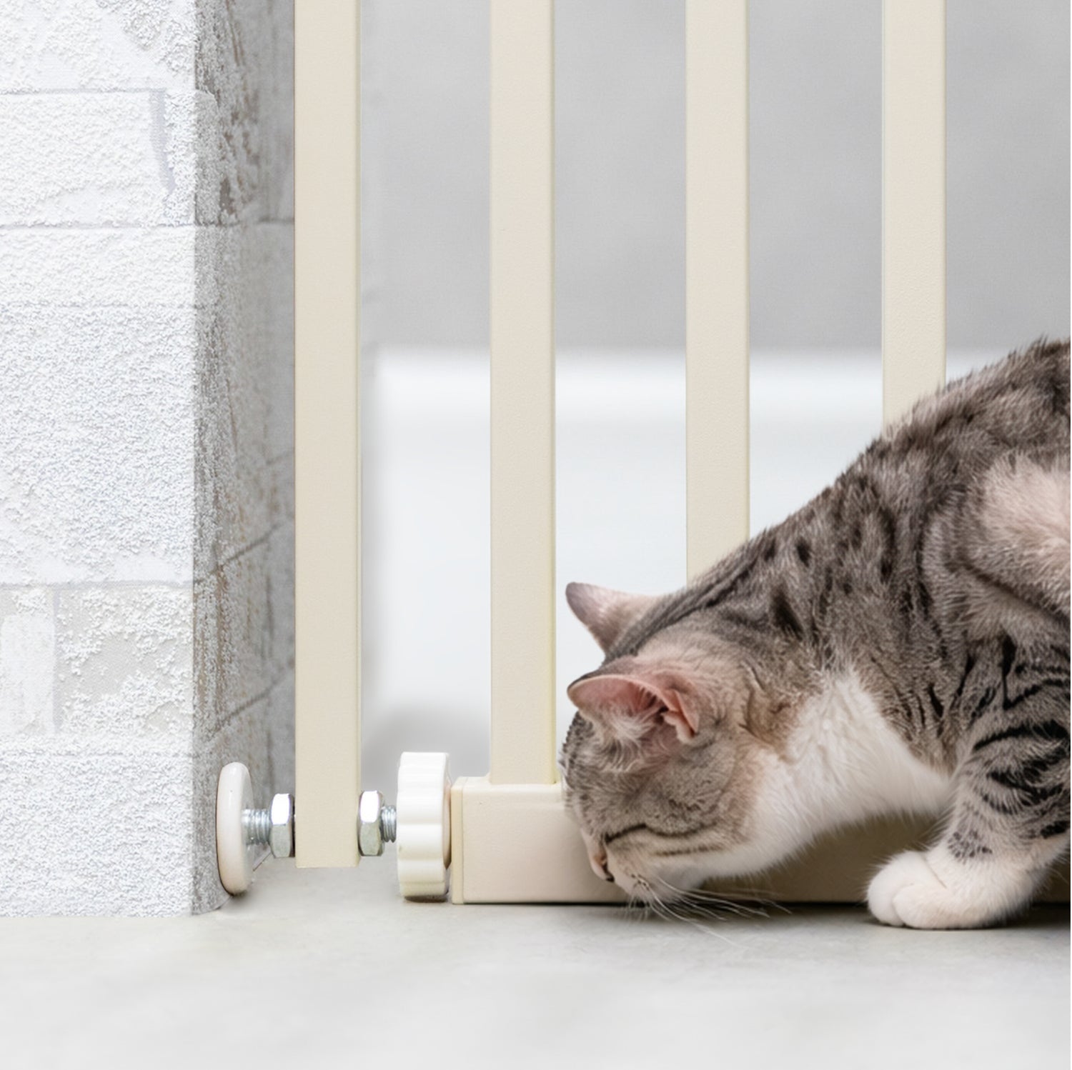 壁との間のスキマを3.7cm以下に抑えました。従来品では成猫でも通れる7cmほどのスキマができてしまうことも・・・。