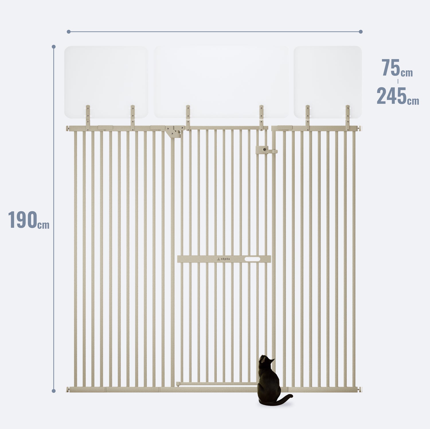 高さ190cm、よこ幅245cmまで対応。150cmのウォールでは、猫が飛び越えた・・・という声が多数。だから、CAT WALLは安心の190cm。