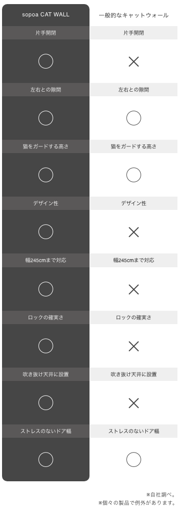 従来品のフレーム幅が4〜5cmのところCAT WALLはわずか2cm。他の柱とほとんど同じ太さなので幅の拡張時も美しい。